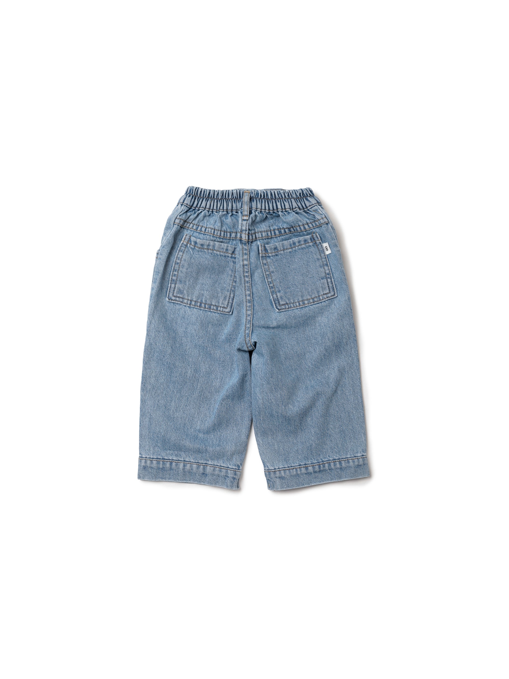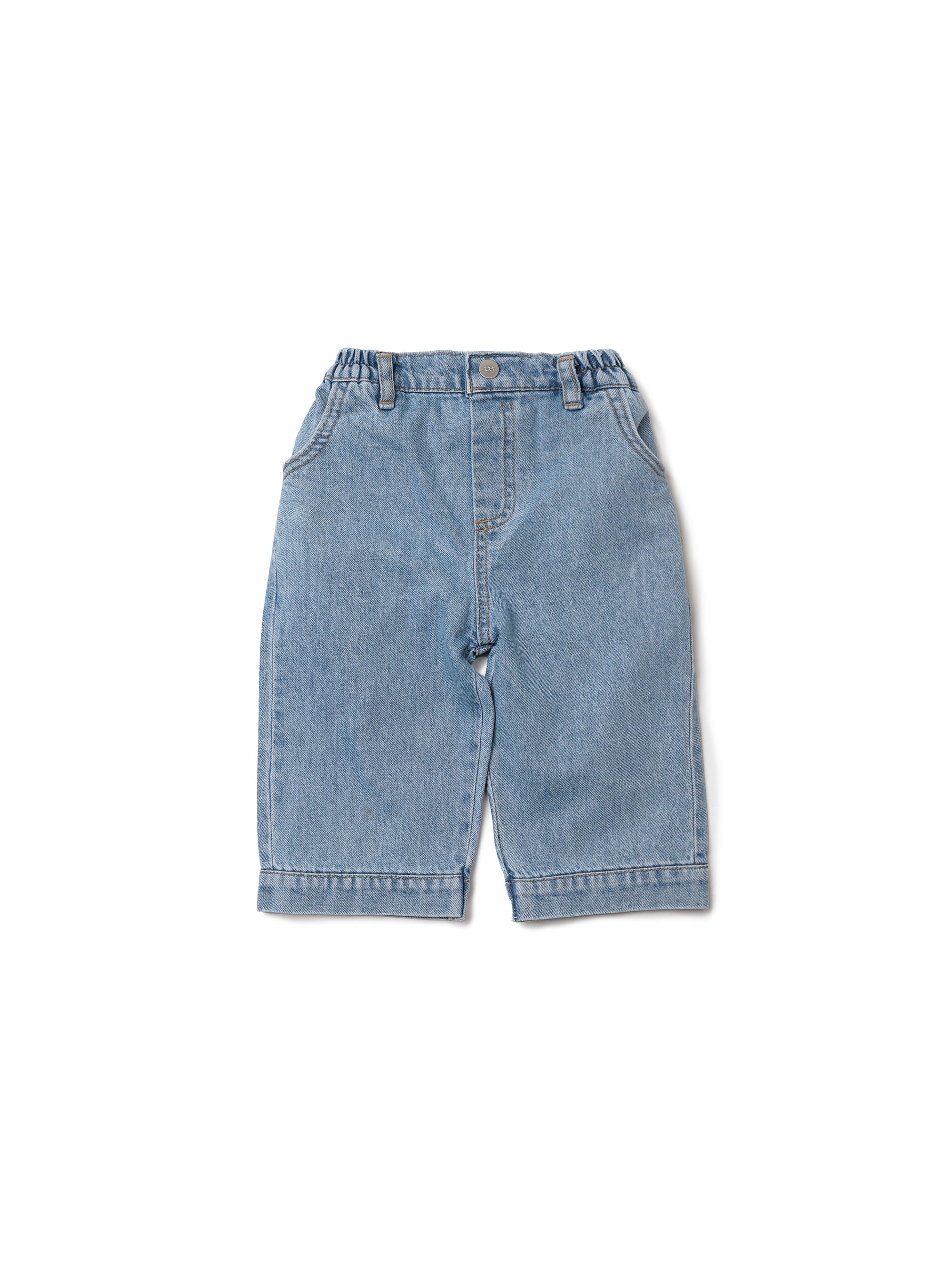 100%コットンのデニム素材で自然な色合いと柔らかな手触りのデニムパンツ。