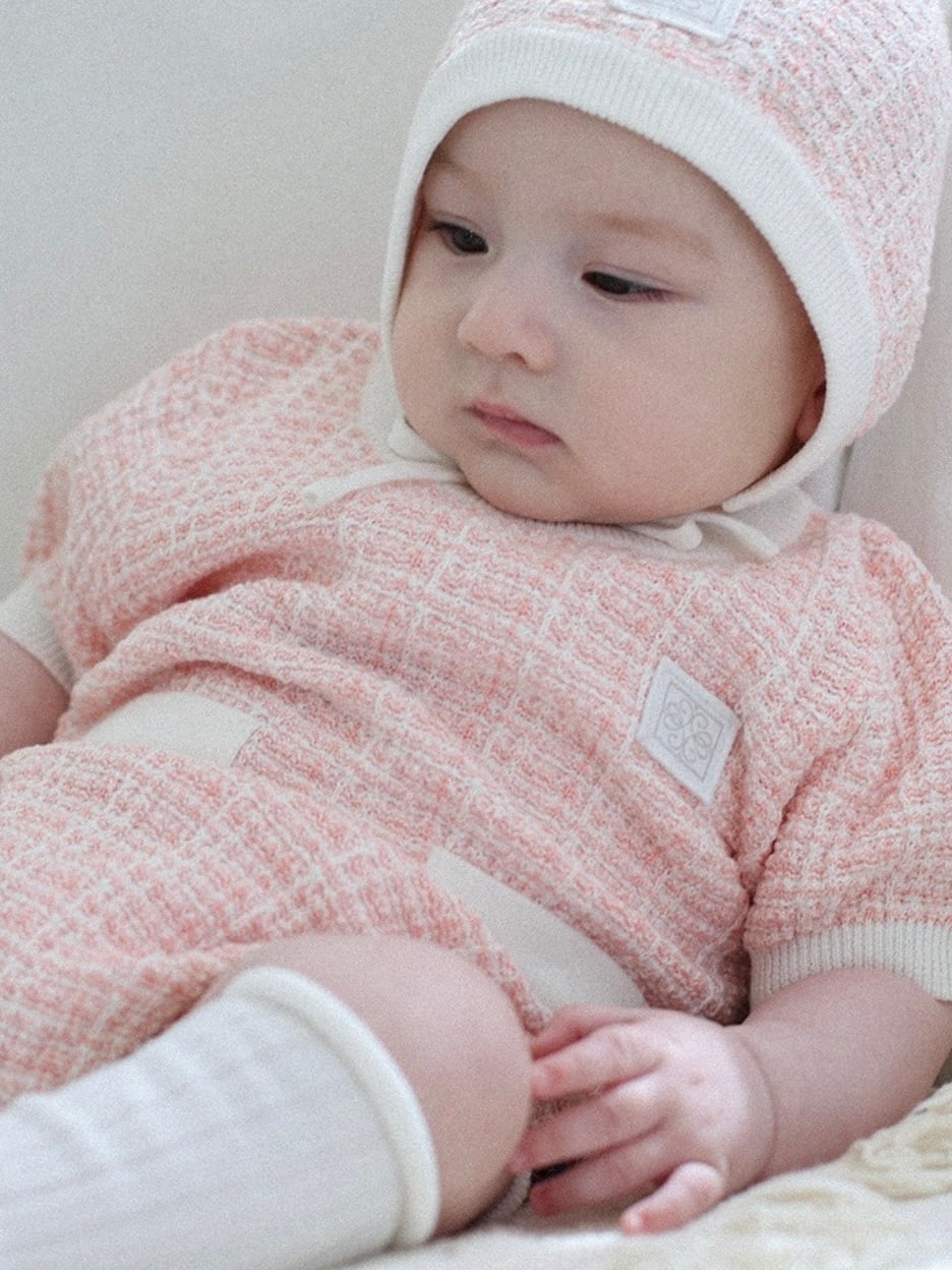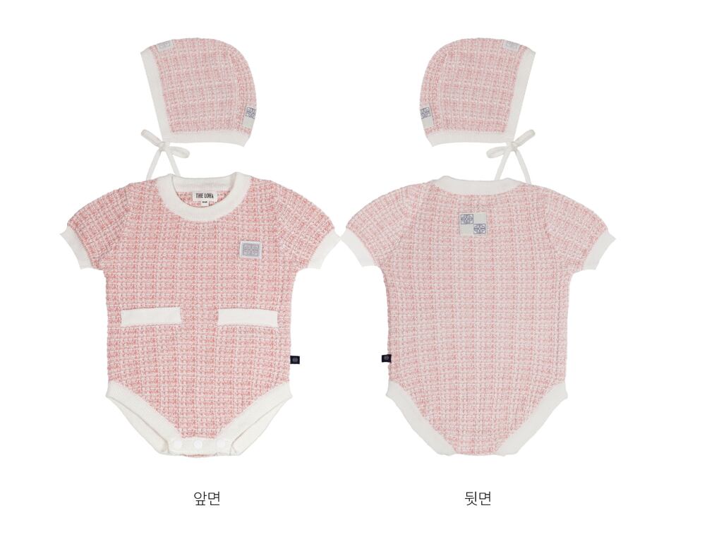 ツイード風で上品な印象のボディスーツ&ボンネットSET。