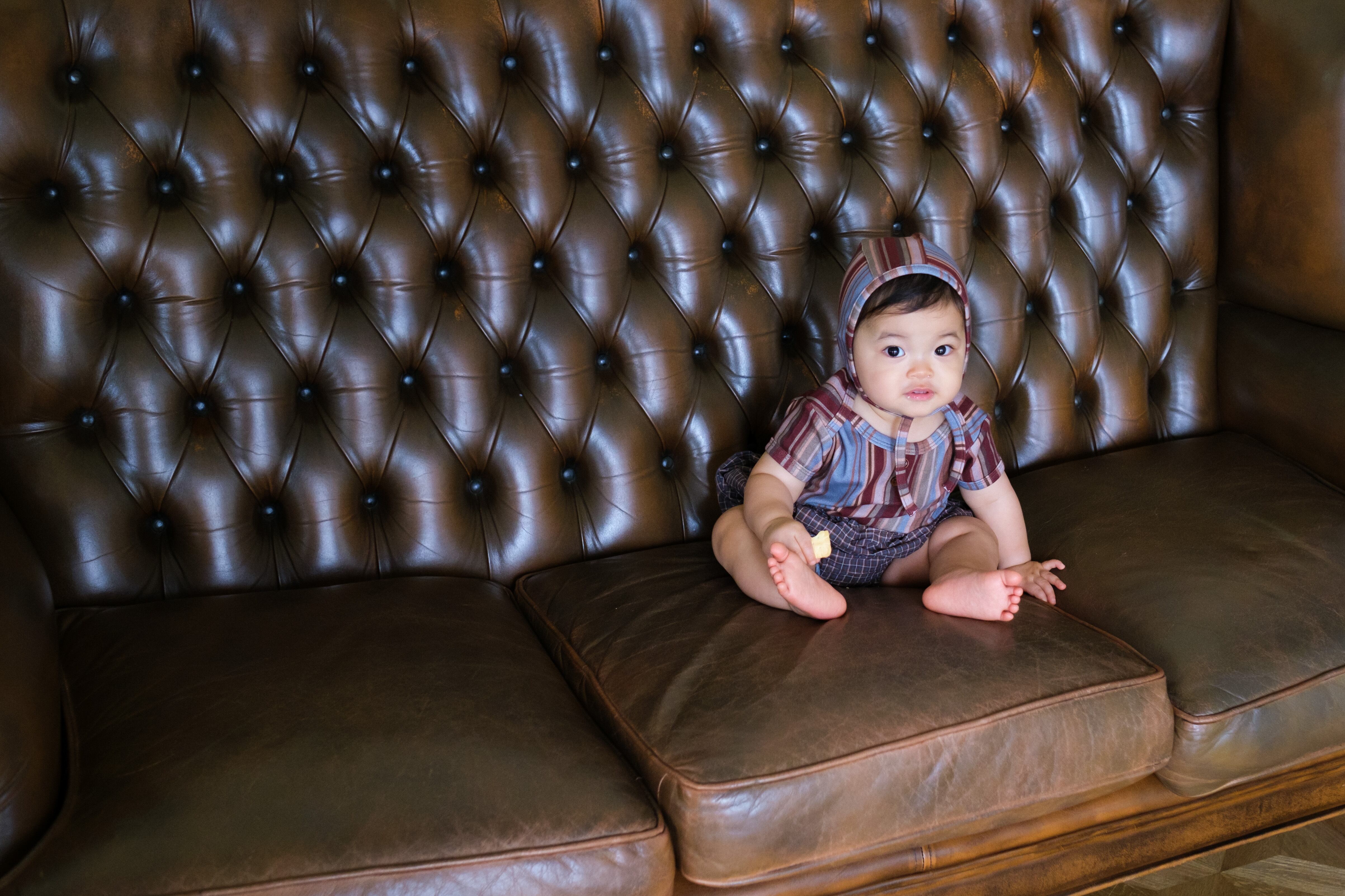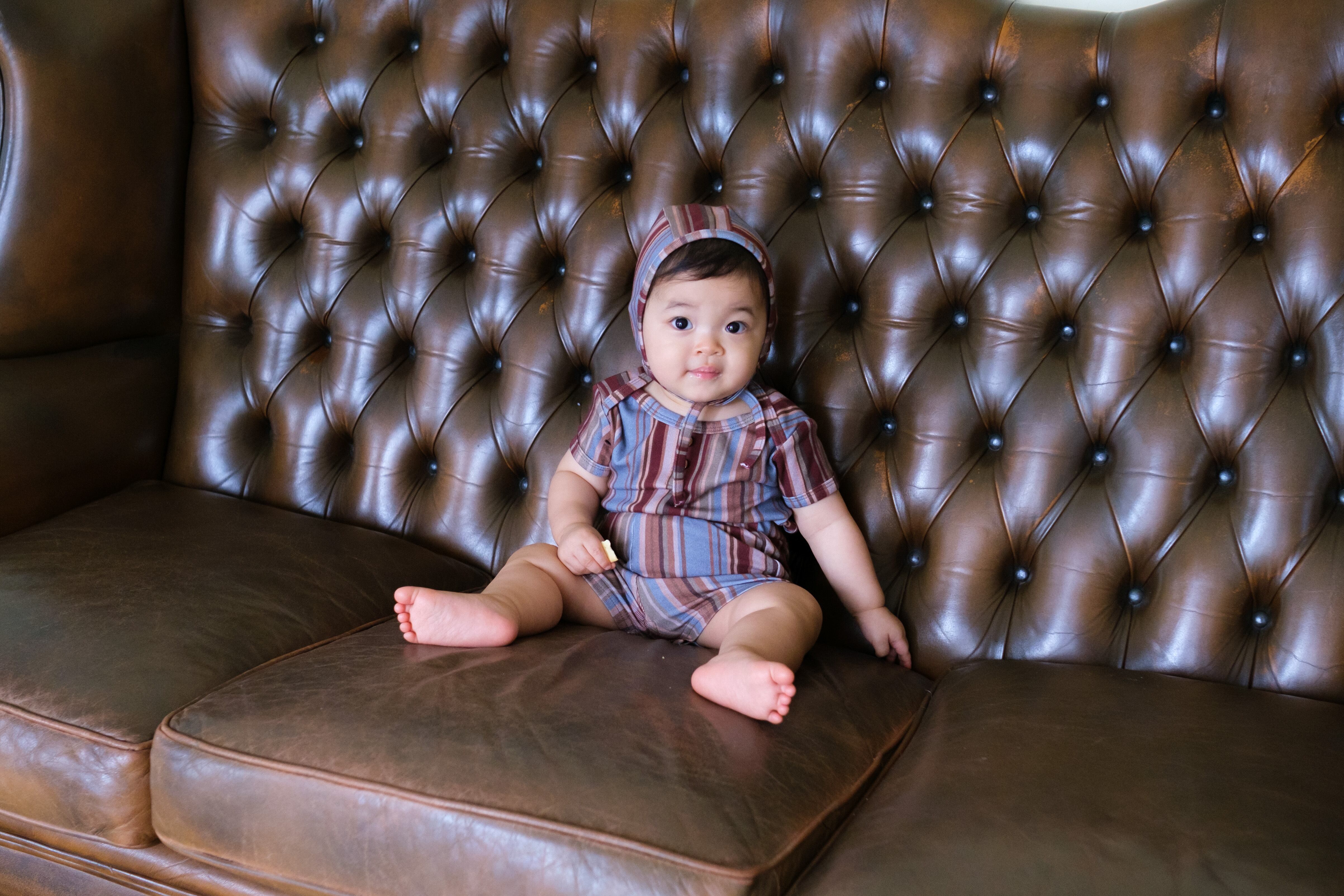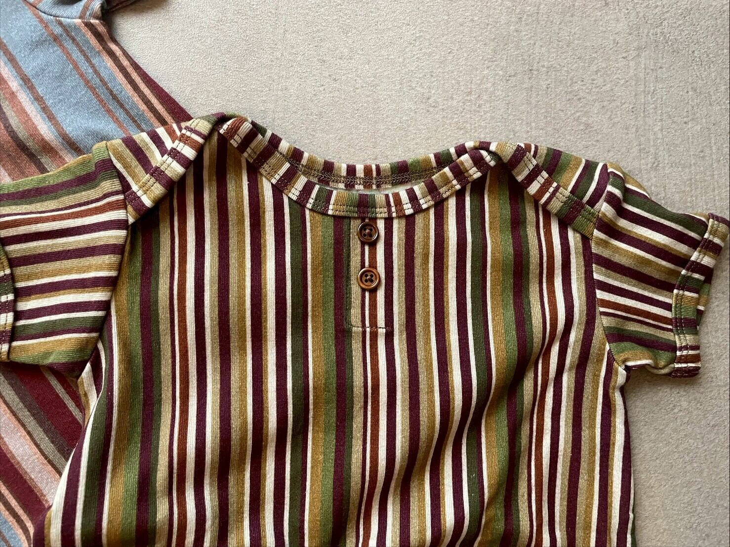 レトロ配色のストライプ柄が "&palらしい" ロンパース